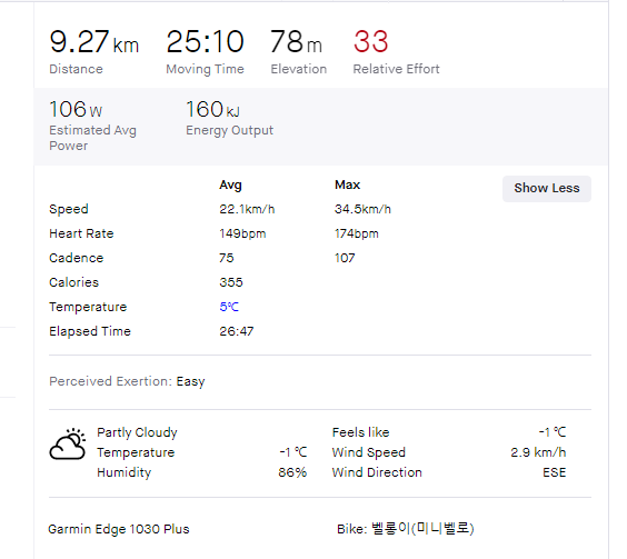현실적으로 132rpm 으로 라이딩 하는 것은 불가능하기에 케이던스를 90~100rpm 으로 낮추고 토크에 분배를 해 주는 라이딩을 했을 때, 로드와 미니벨로의 기어비 대비 속도차를 구하면 로드와 함께 달릴 수 있는지 없는지를 확인할 수 있다.