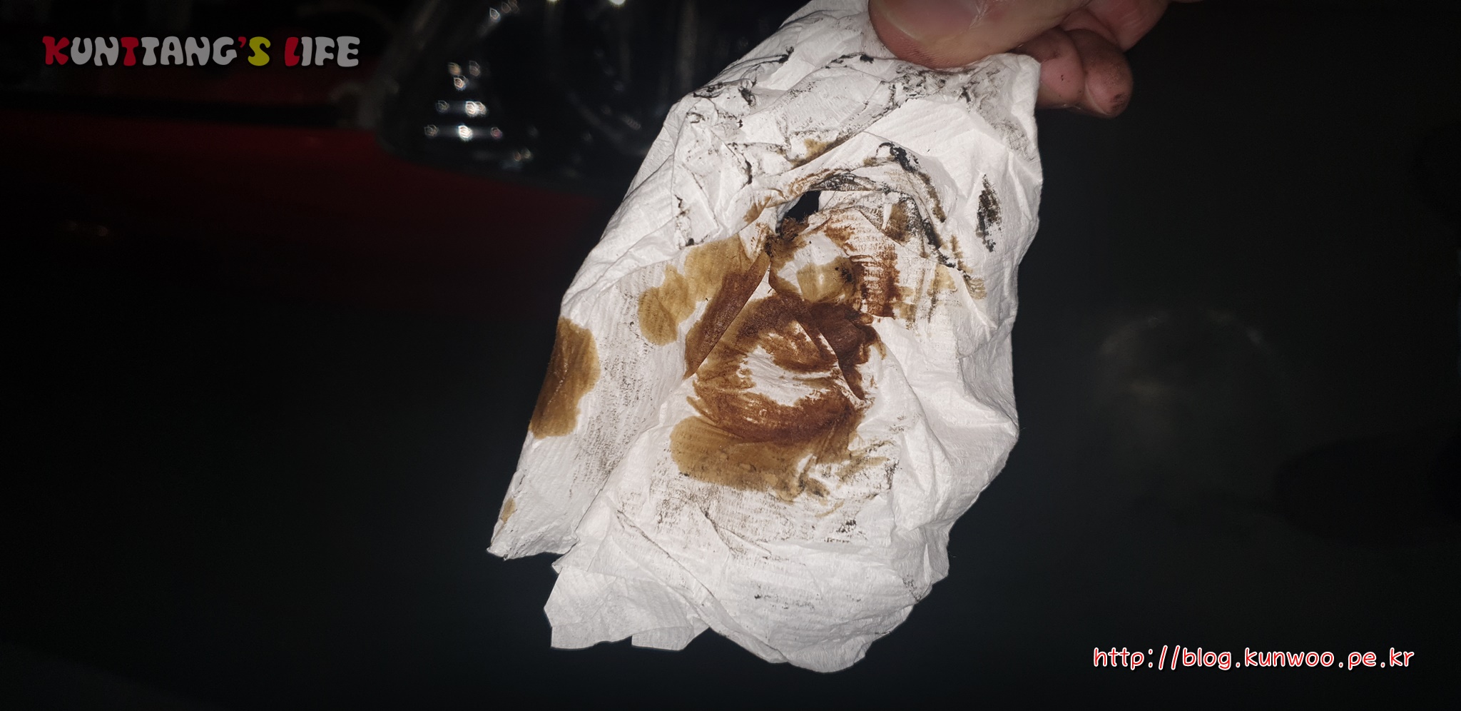 [그림 3] 엔진오일 뚜껑을 닦은 휴지